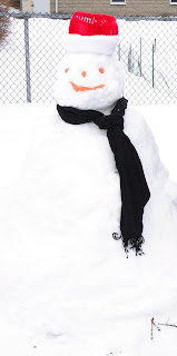 You'd much rather enjoy it. And thats what we decided to do this morning after being hit by 7 inches of snow overnight. So...its my 3rd winter here, and I'd never actually built a snowman. So, we got the carrots, muffler, cap , and shovel and decided to build one.